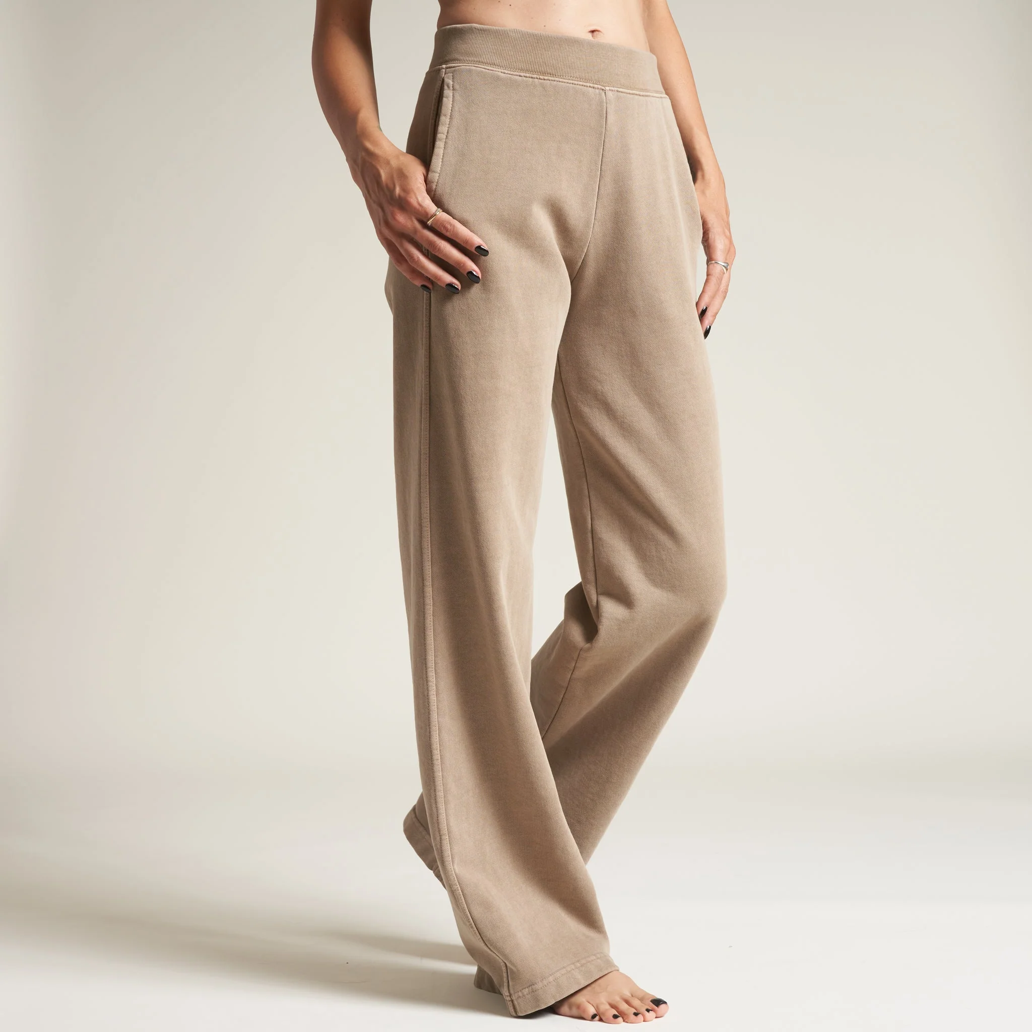 A new loungewear silhouette arrives with the full-length, wide-leg Jenny sweatpant. Fun, flattering, and flowy, the Jenny is made from our specially-milled, heavier-weight American grown 100% cotton French terry. Fitted through the hips with some give and a wide elastic high-rise waistband, the Jenny has on-seam side pockets and double-needle topstitching at the side seams, elevated details for a comfy and easy pant.